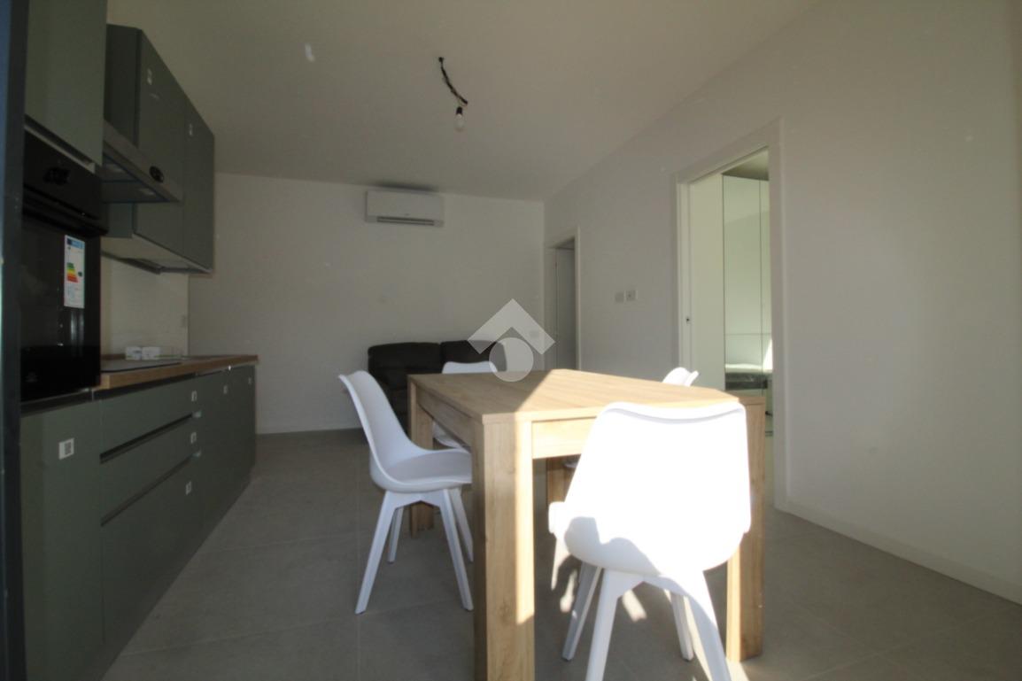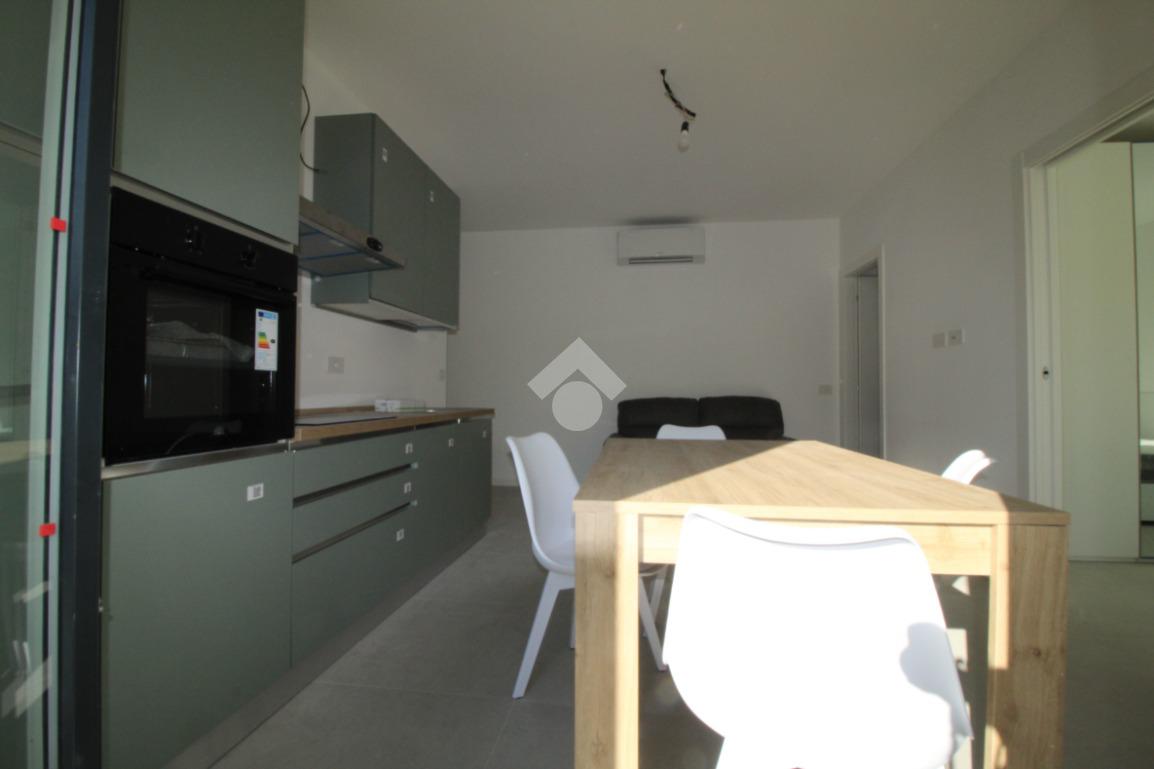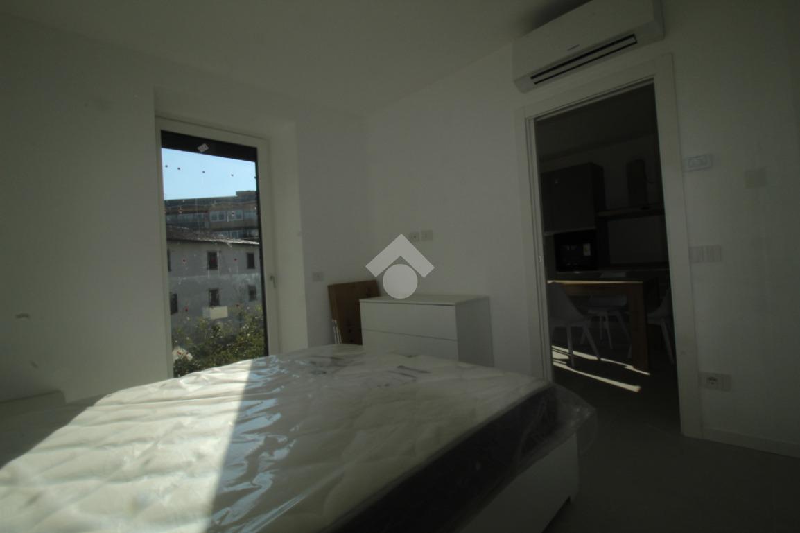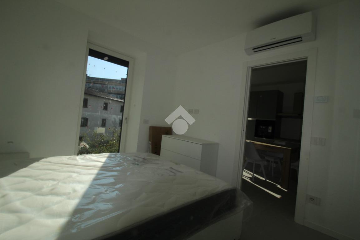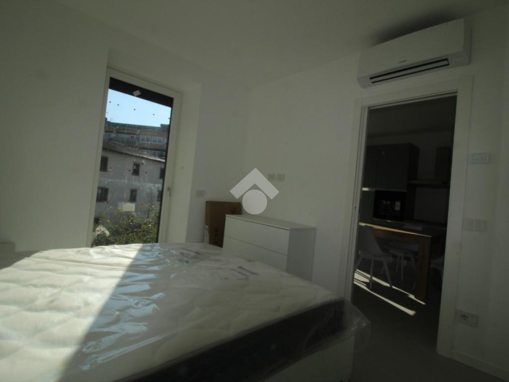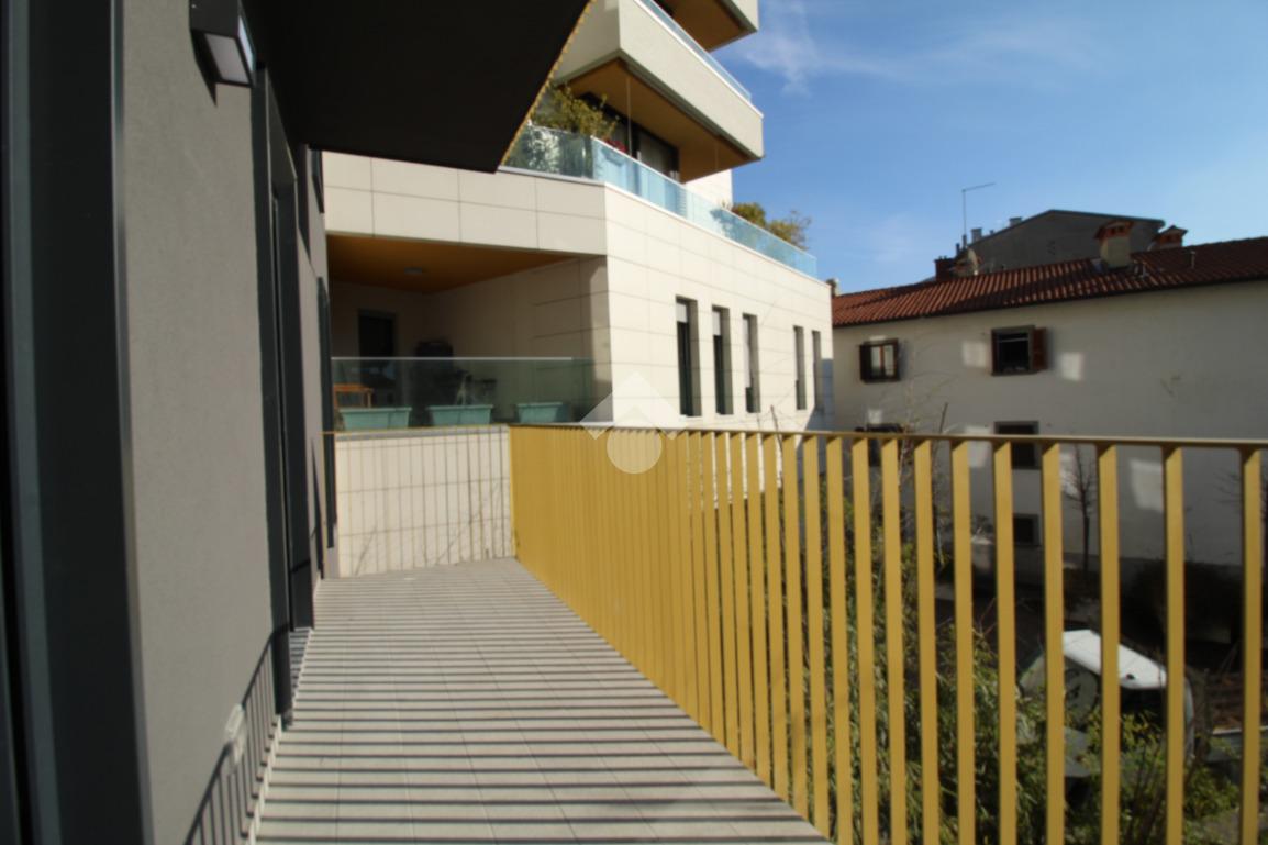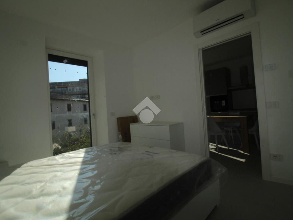 Zona Santa Lucia: via ventiquattro maggio, in zona centrale e ben servita, ampio ed assolato piano medio servito da ascensore in contesto signorile appena ultimato. L'appartamento si compone di ingresso, soggiorno con cucina a vista ed uscita diretta al comodo terrazzino, camera matrimoniale, bagno finestrato con doccia e comodo ripostiglio/lavanderia. Completamente arredato con mobili nuovi e di qualità, piano cottura ad induzione e lavastoviglie. Riscaldamento e raffrescamento autonomo con Split idronici e pannelli fotovoltaici per parti comuni e per climatizzazione estiva. I serramenti sono in alluminio e legno con gas argon ad altissima efficienza etrmica ed acustica. Tapparelle motorizzate. Annessa grande cantina raggiungibile dall'ascensore.