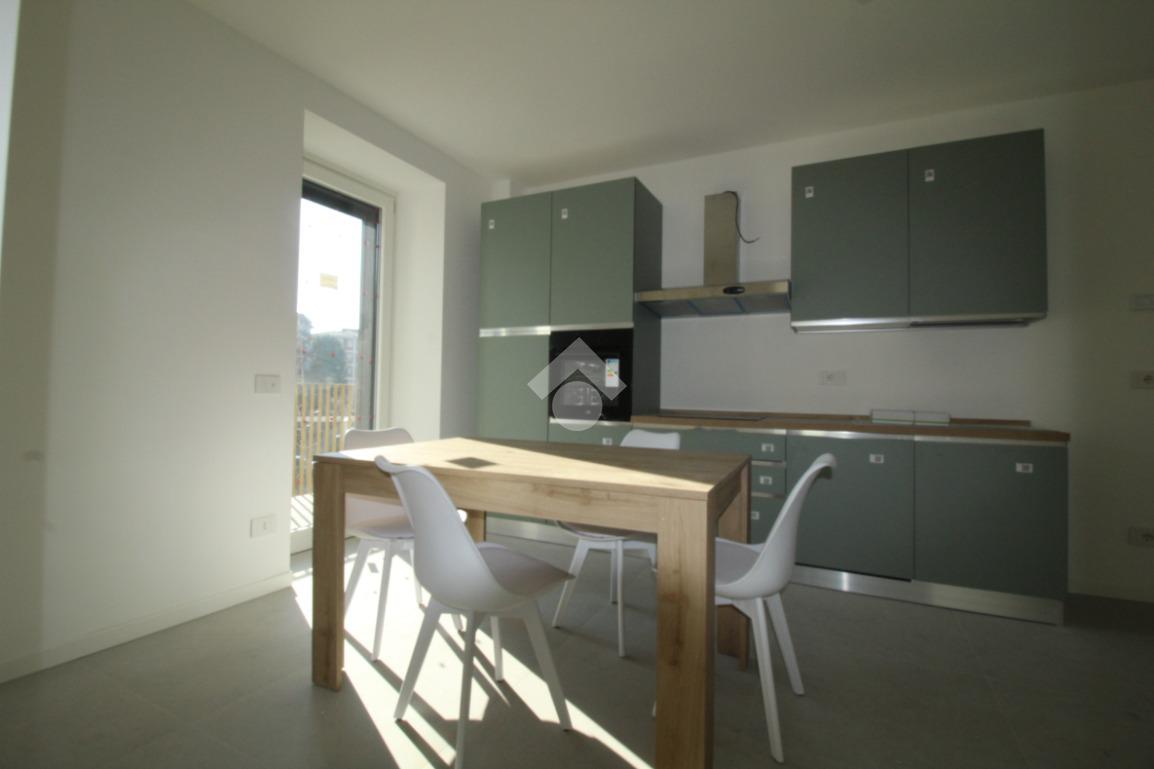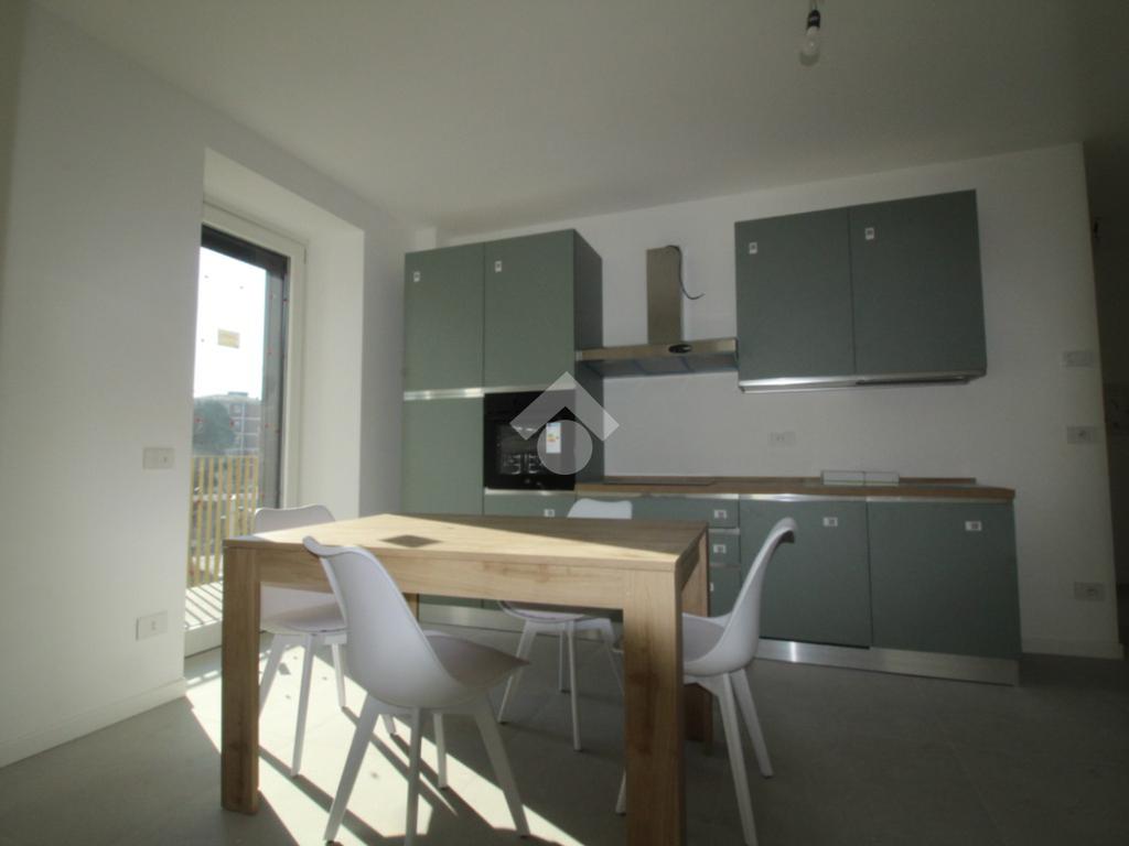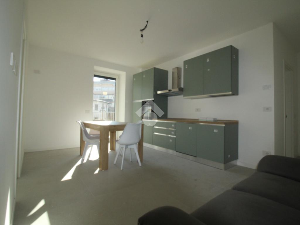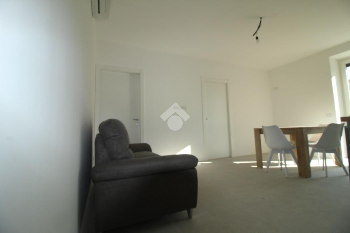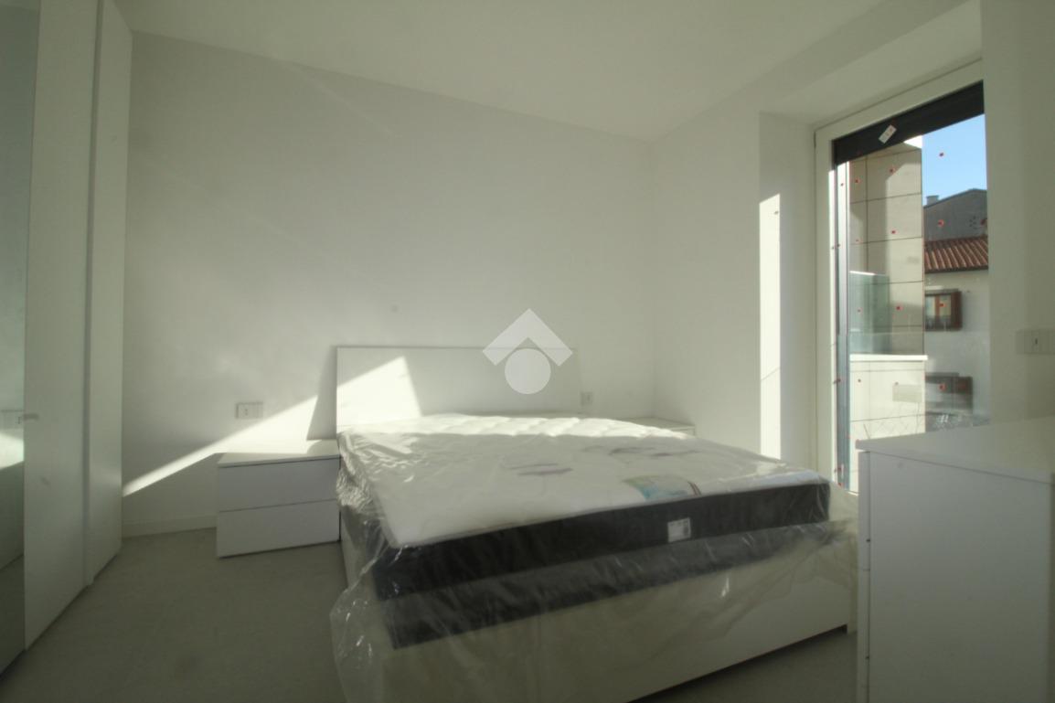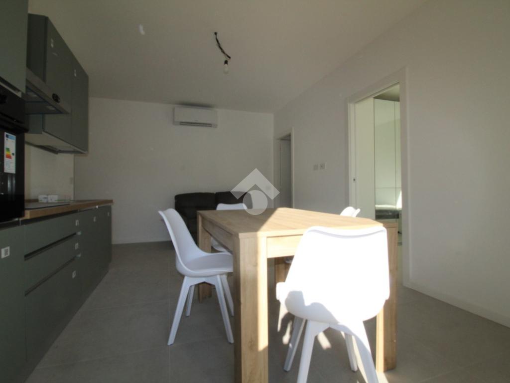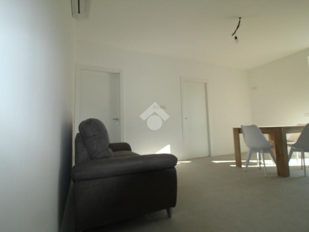 Zona Santa Lucia: via ventiquattro maggio, in zona centrale e ben servita, ampio ed assolato piano medio servito da ascensore in contesto signorile appena ultimato. L'appartamento si compone di ingresso, soggiorno con cucina a vista ed uscita diretta al comodo terrazzino, camera matrimoniale, bagno finestrato con doccia e comodo ripostiglio/lavanderia. Completamente arredato con mobili nuovi e di qualità, piano cottura ad induzione e lavastoviglie. Riscaldamento e raffrescamento autonomo con Split idronici e pannelli fotovoltaici per parti comuni e per climatizzazione estiva. I serramenti sono in alluminio e legno con gas argon ad altissima efficienza etrmica ed acustica. Tapparelle motorizzate. Annessa grande cantina raggiungibile dall'ascensore.