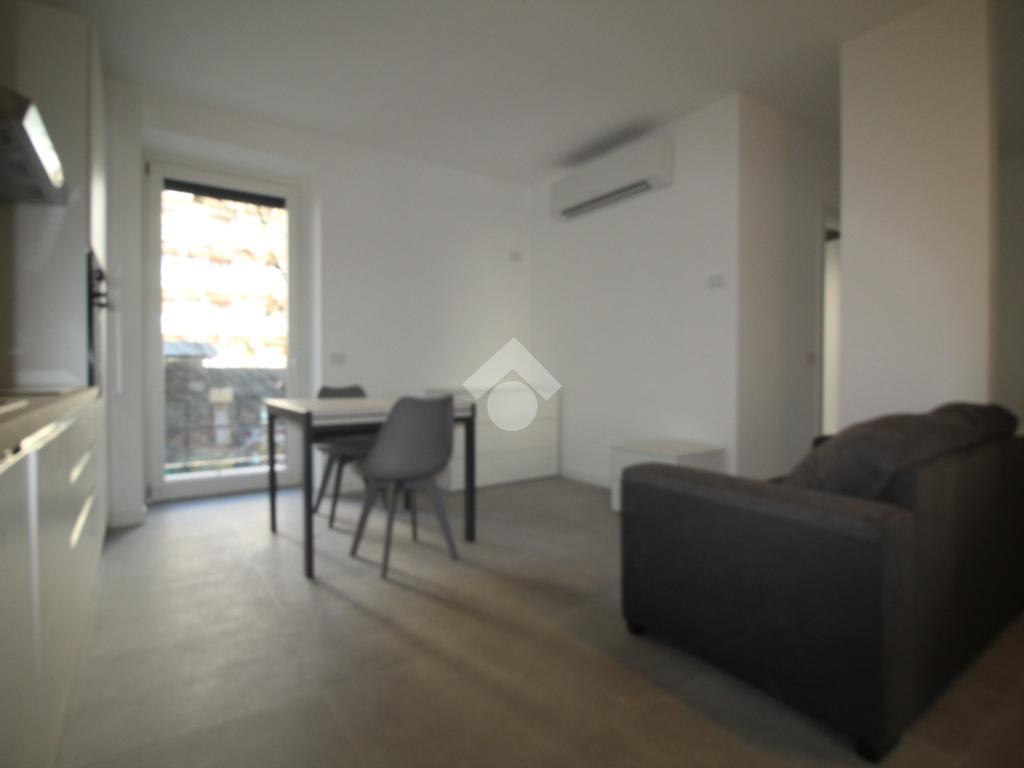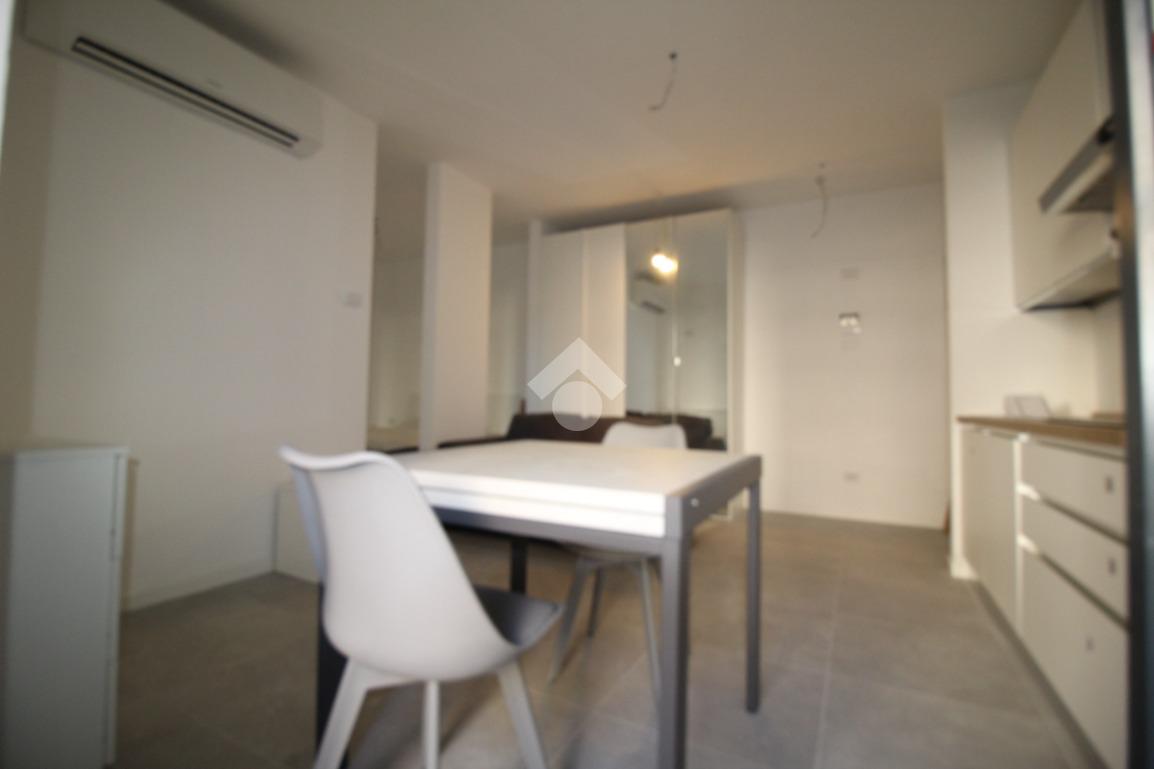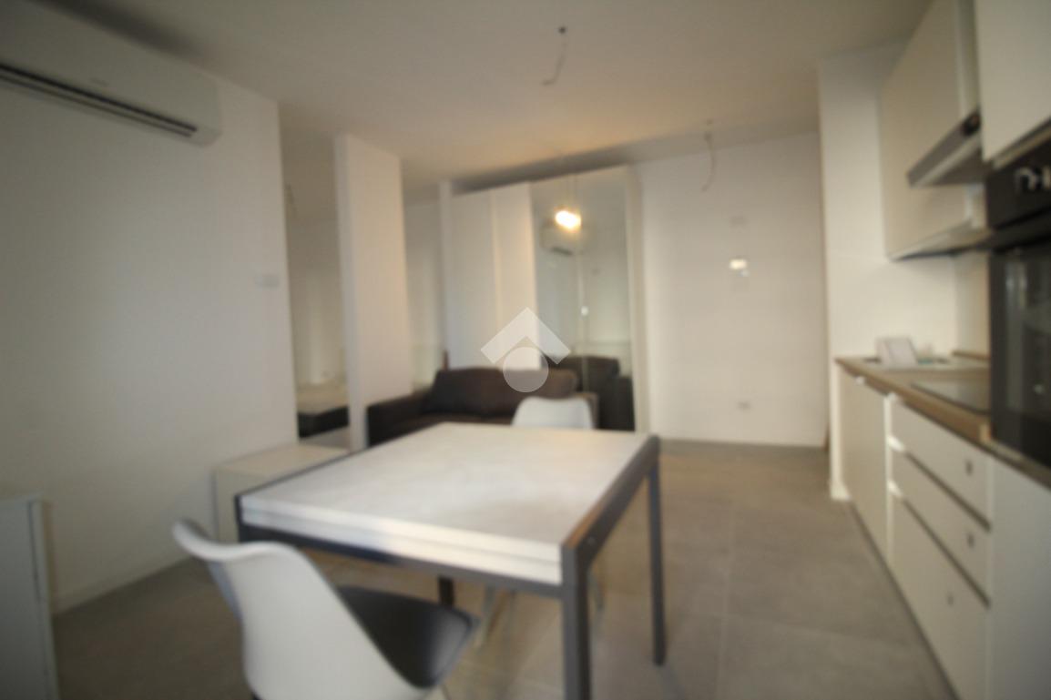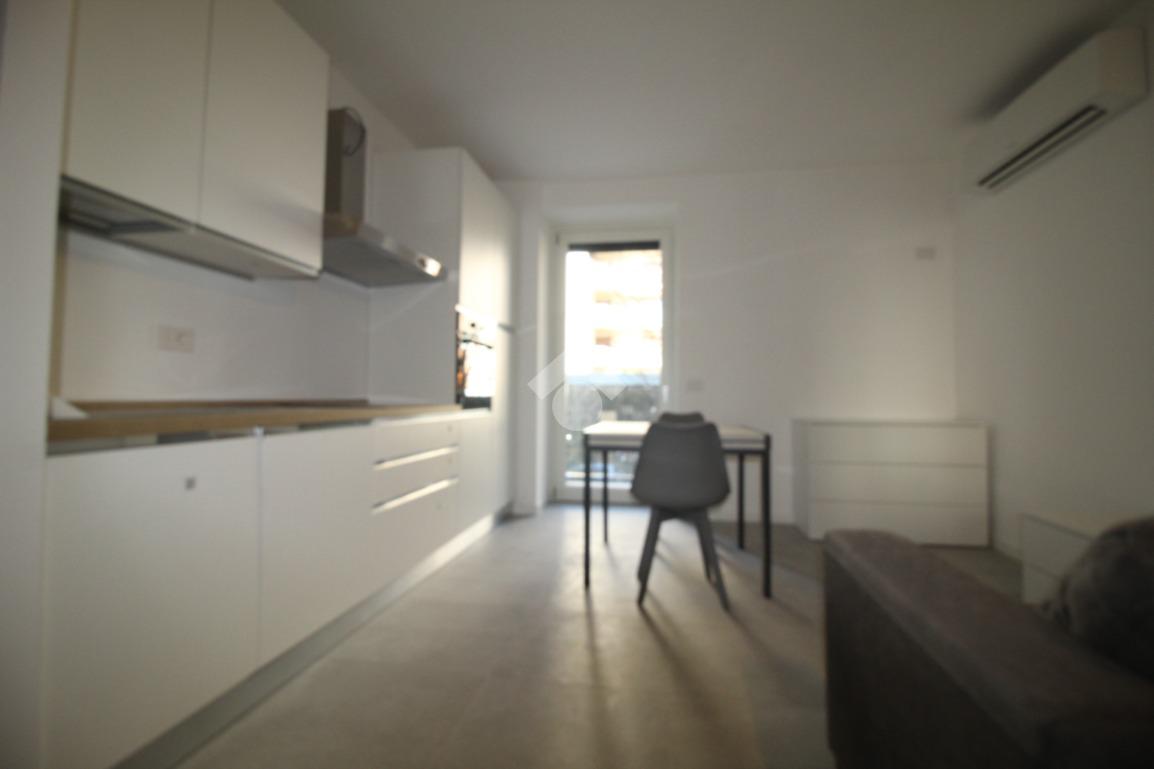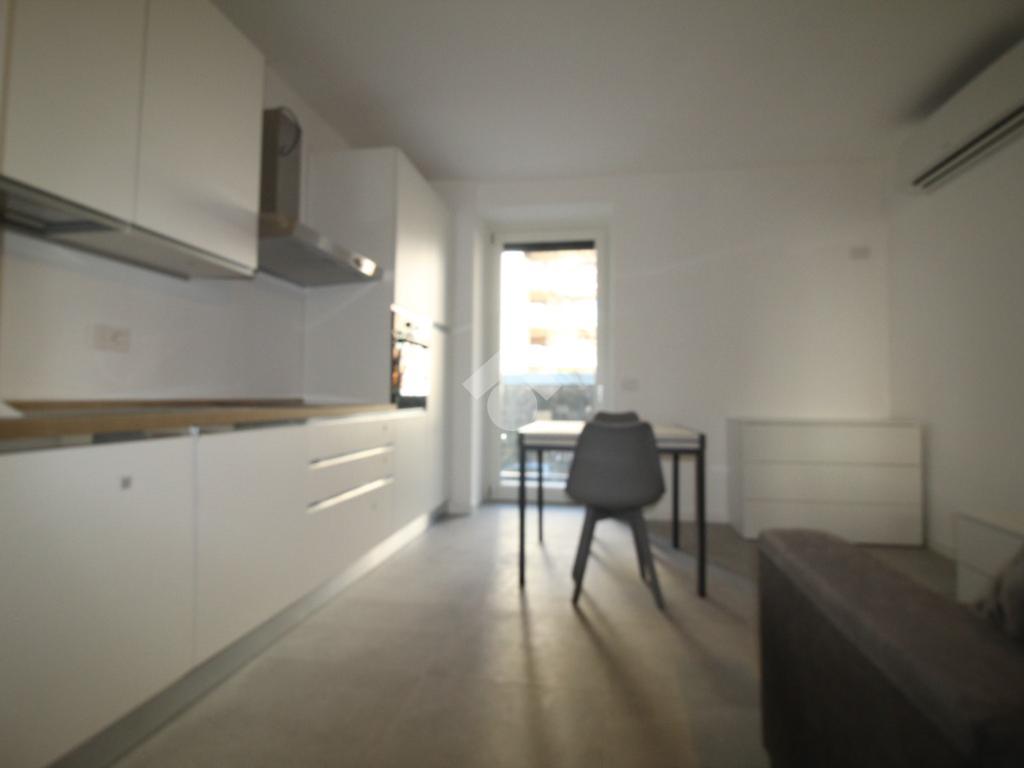 Zona Santa Lucia: via ventiquattro maggio, in zona centrale e ben servita, ampio ed assolato piano medio servito da ascensore in contesto signorile appena ultimato. L'appartamento si compone di soggiorno con cucina a vista ed uscita diretta al comodo balconcino, spazio con letto matrimoniale, bagno finestrato con doccia. Completamente arredato con mobili nuovi e di qualità, piano cottura ad induzione e lavastoviglie. Riscaldamento e raffrescamento autonomo con Split idronici e pannelli fotovoltaici per parti comuni e per climatizzazione estiva. I serramenti sono in alluminio e legno con gas argon ad altissima efficienza termica ed acustica. Tapparelle motorizzate. Annessa comoda cantina raggiungibile dall'ascensore.