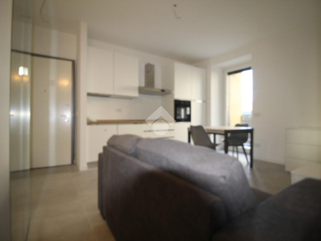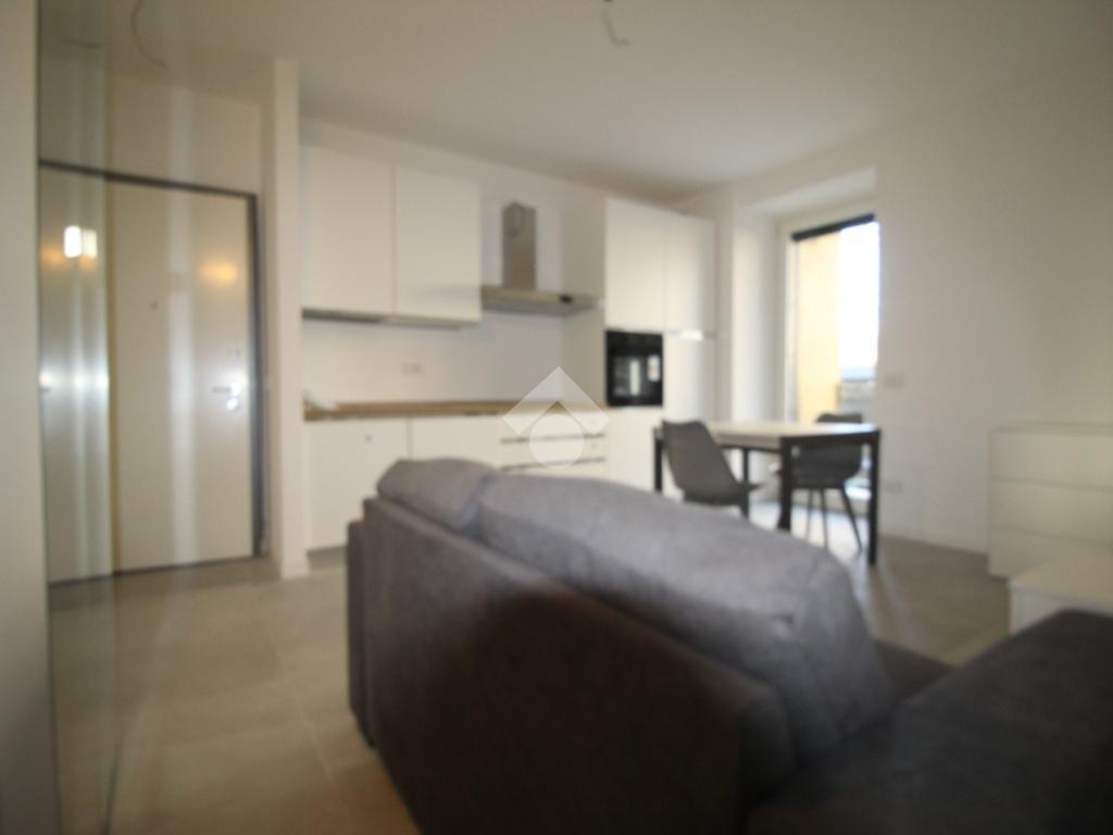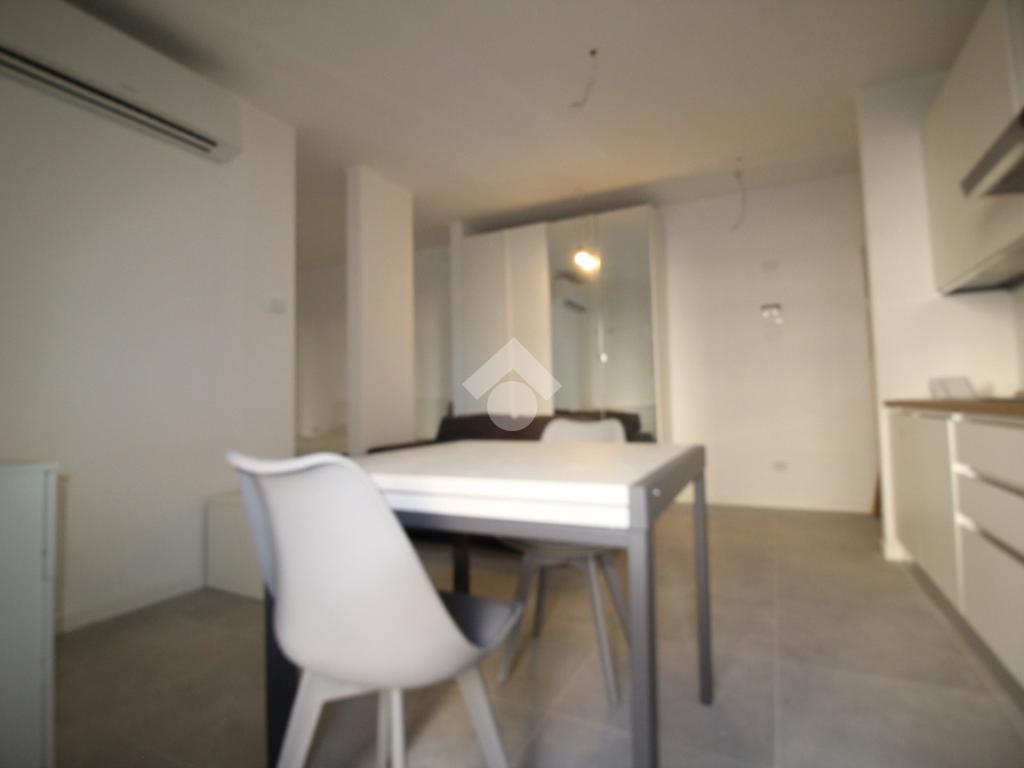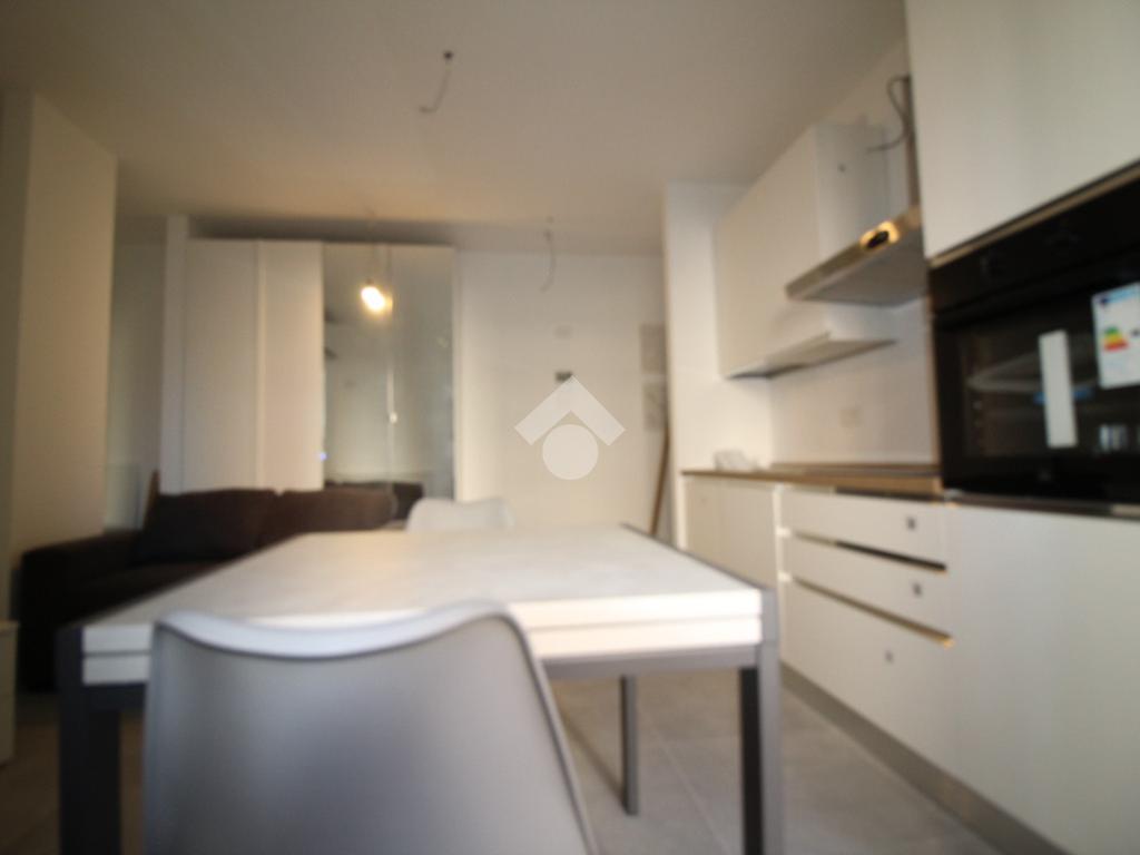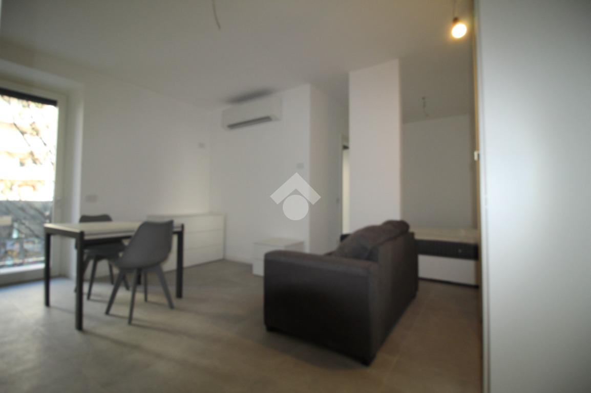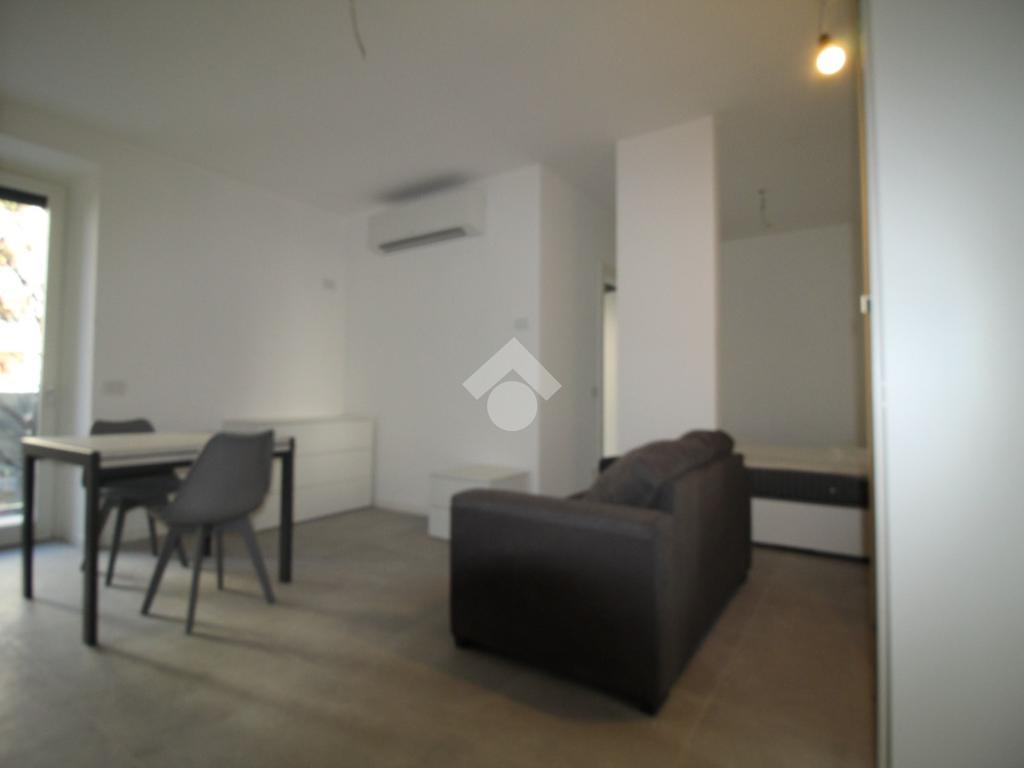 Zona Santa Lucia: via ventiquattro maggio, in zona centrale e ben servita, ampio ed assolato piano medio servito da ascensore in contesto signorile appena ultimato. L'appartamento si compone di soggiorno con cucina a vista ed uscita diretta al comodo balconcino, spazio con letto matrimoniale, bagno finestrato con doccia. Completamente arredato con mobili nuovi e di qualità, piano cottura ad induzione e lavastoviglie. Riscaldamento e raffrescamento autonomo con Split idronici e pannelli fotovoltaici per parti comuni e per climatizzazione estiva. I serramenti sono in alluminio e legno con gas argon ad altissima efficienza termica ed acustica. Tapparelle motorizzate. Annessa comoda cantina raggiungibile dall'ascensore.