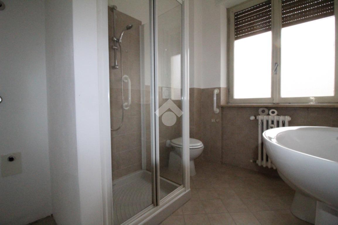 Zona Broseta: in zona centrale eben servita, ampio e luminoso piano medio servito da ascensore in condominio ben tenuto. L'appartamento si compone di ingresso, soggiorno e cucina abitabile con uscita diretta al aterrazzo, didmpgno notte, due camere da letto e bagno finestrato con doccia. Ristrutturato con infissi nuovi in pvc triplo vetro. Non arredato. Riscaldamento semiautonomo per la presenza di termovalvole e di contaclorie. Annessa cantina. Libero da fine aprile.